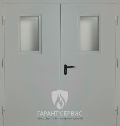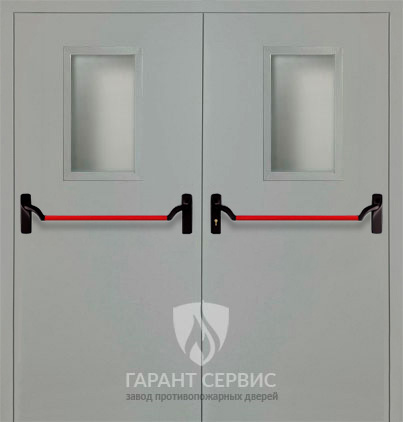 Противопожарная двупольная дверь со стеклом и антипаникой