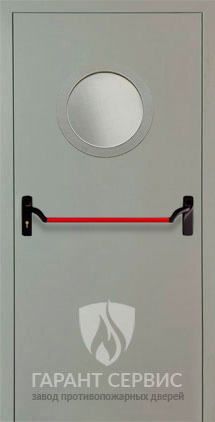 Противопожарная однопольная дверь с круглым стеклом и антипаникой