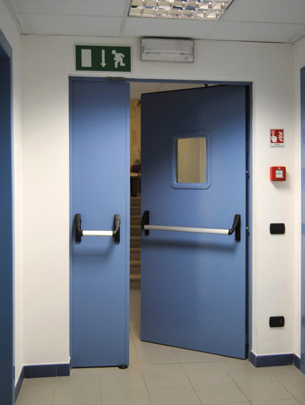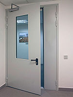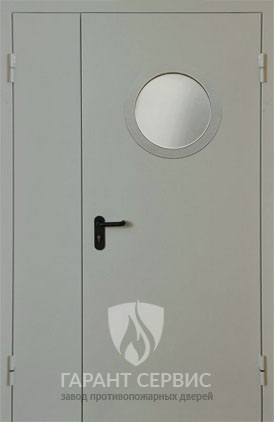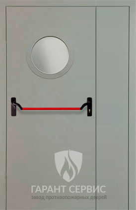 Противопожарная полуторная дверь с круглым стеклом и антипаникой